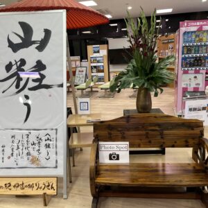 書とお花のコーナーに新しく”木の椅子”が設置されております!